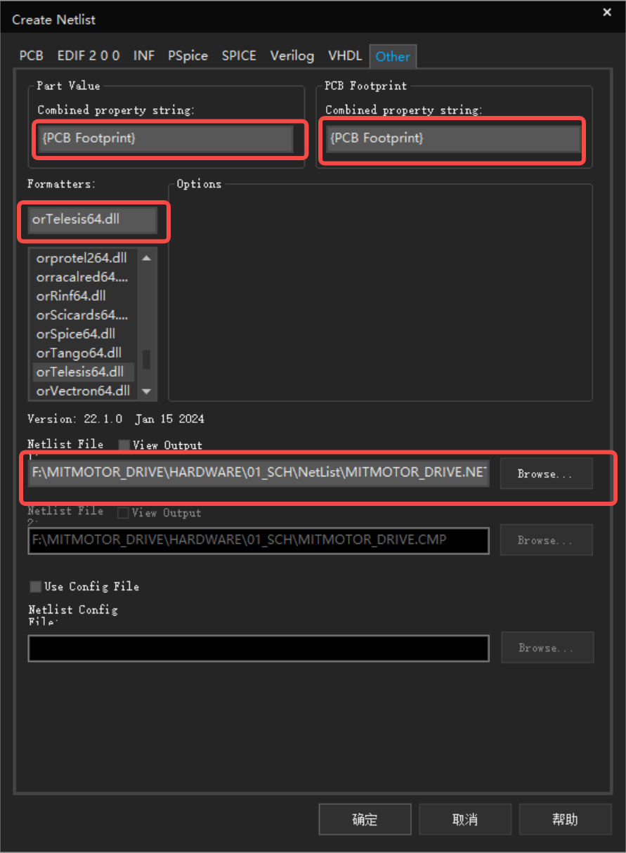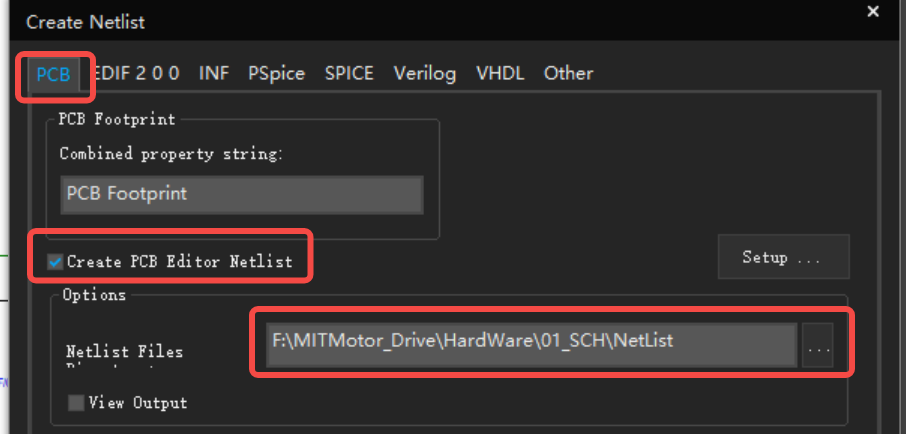 第一网表输出:Tools -> Create Netlist(创建网表)