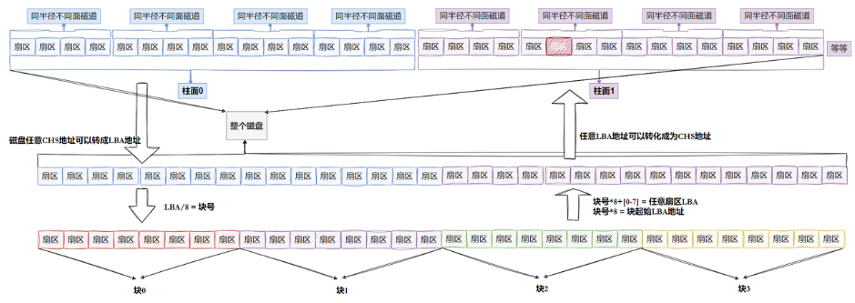 而通过上面的操作我们就能精准找到每一个扇区,我们把上面的操作给总结下来: