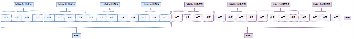 但是根据半径的不同一个磁盘有多个柱面,我们不就可以这样看待一个磁盘一个磁盘的展开:
