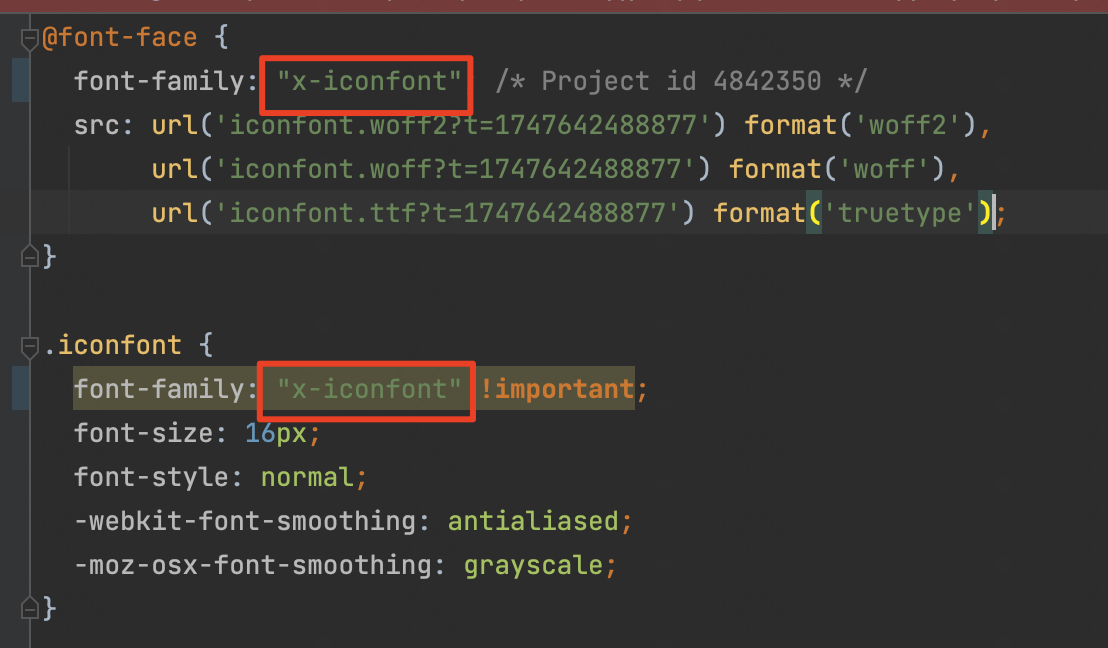 修改阿里云iconfont.css文件里的font-family名称为其他名称: