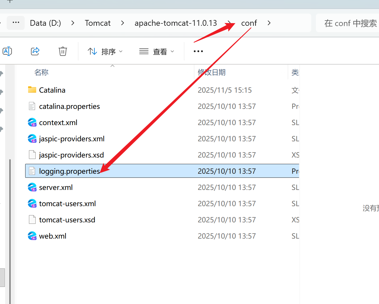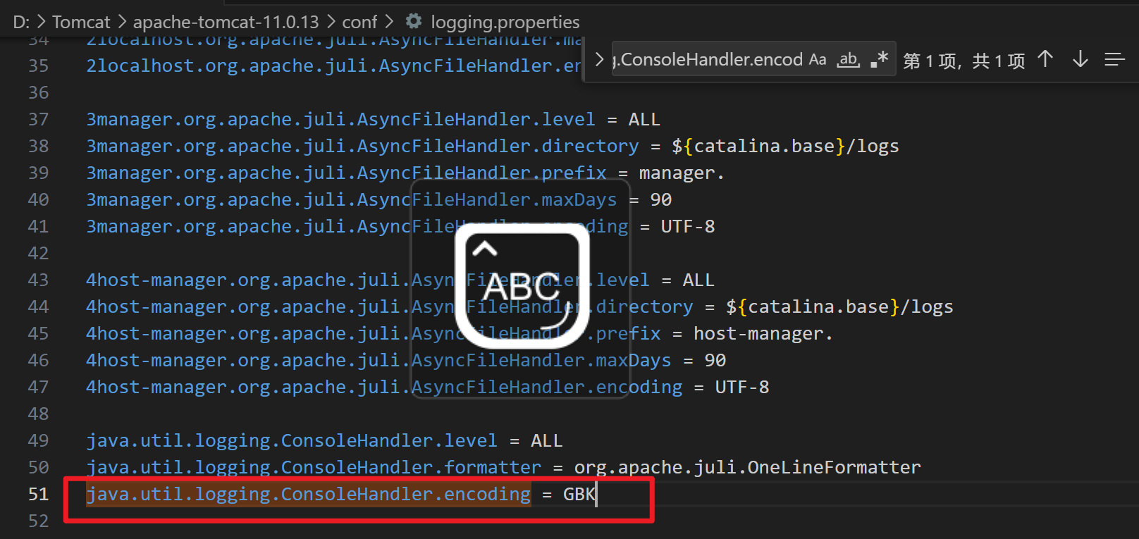 乱码处理:在conf中把该目录下的“logging.properties”文件中修改“java.util.logging.ConsoleHandler.encoding”为GBK即可。