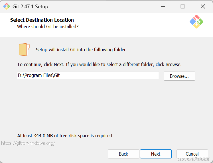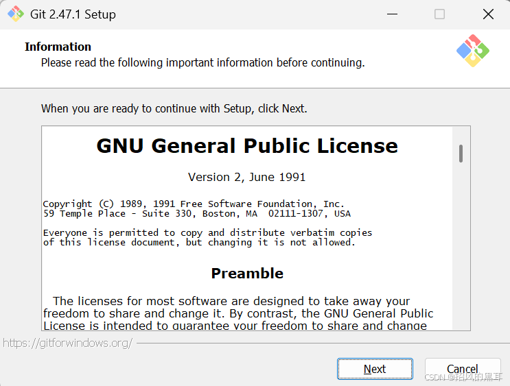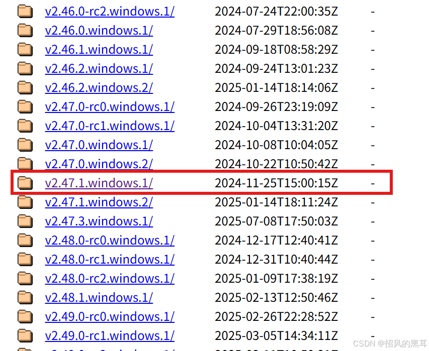下载步骤:打开上面下载链接 → 滚动到页面底部 → 选择2.40.x或更高版本的 .exe 文件(如 Git-2.41.0.3-64-bit.exe)下载