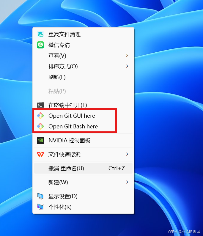 6、Win+D回到桌面,鼠标右键可以看到多出下图两个指令