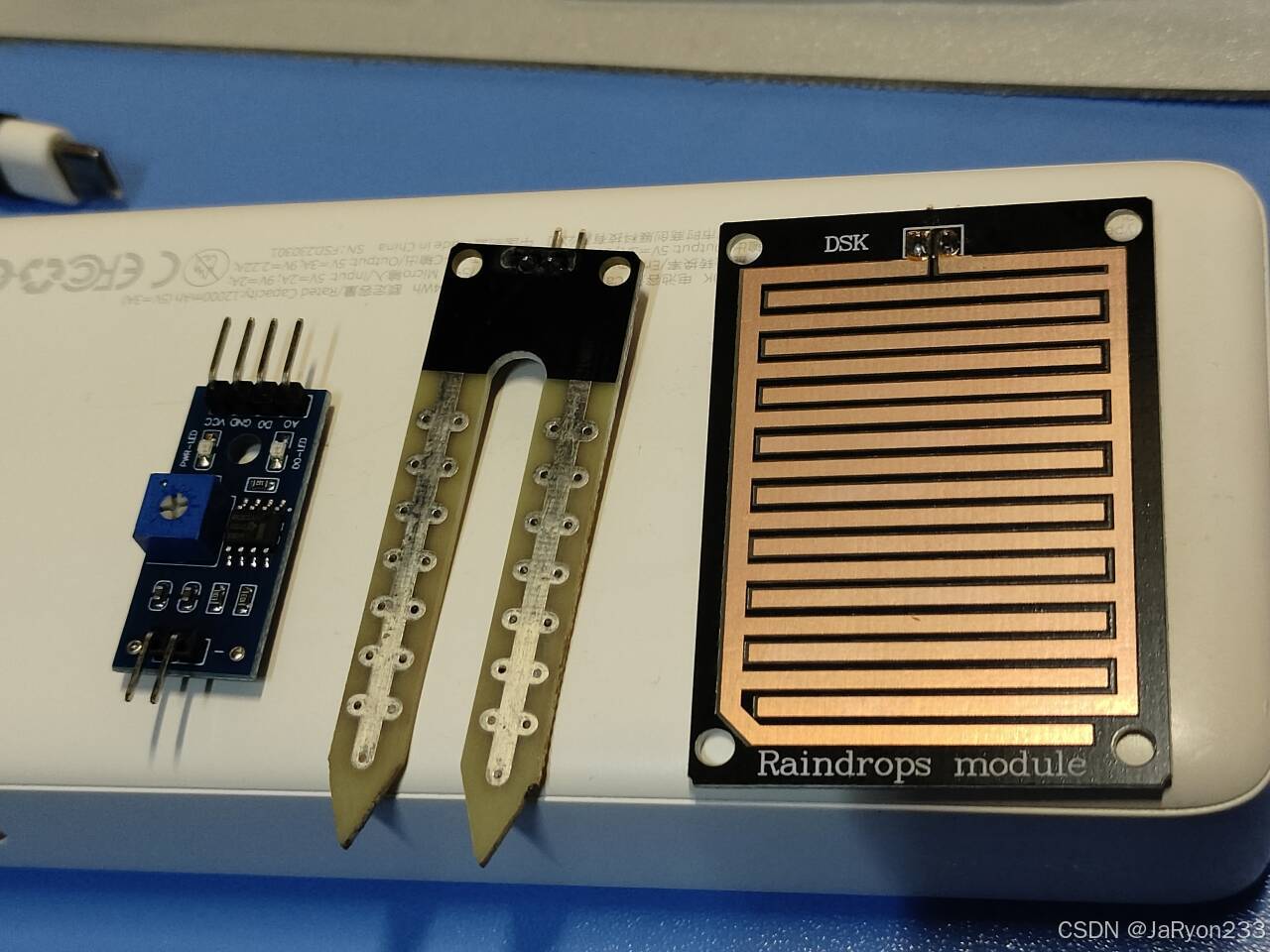 本次我们继续学习俩传感器,分别是雨滴传感器以及土壤湿度传感器,顾名思义,就是用于检测雨水量以及检测土壤湿度的传感器,如下图所示。