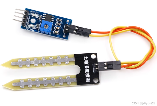 土壤湿度检测是现代智能农业、园林自动灌溉系统中的重要组成部分。本次介绍的四针式土壤湿度传感器模块可以通过探头的两个导电电极以及电子模块实现对土壤湿度的监测。