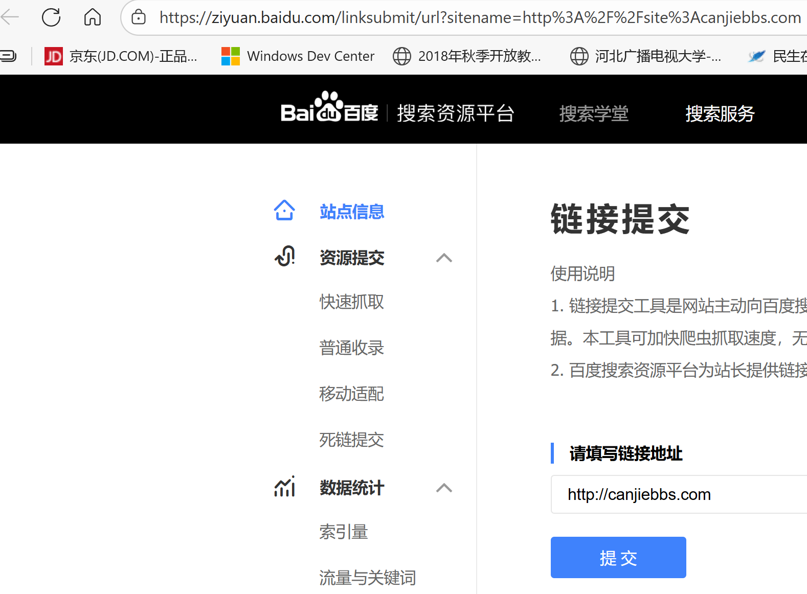 三、点提交网址:http://canjiebbs.com 把 http://canjiebbs.cn 换成您的网站域名