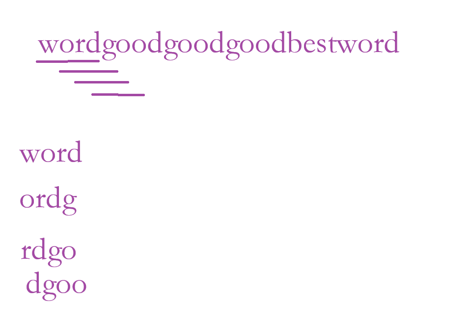 因为我们要遍历的是单词,又因为words中的所有单词的长度都一样,我们不知道从s中的那个下标有可能够成符合条件单词的下标,所以我们我们要遍历words中的单词的长度遍s,不可能大于这个长度,当大于这个长度时表明前面的单词不要了。