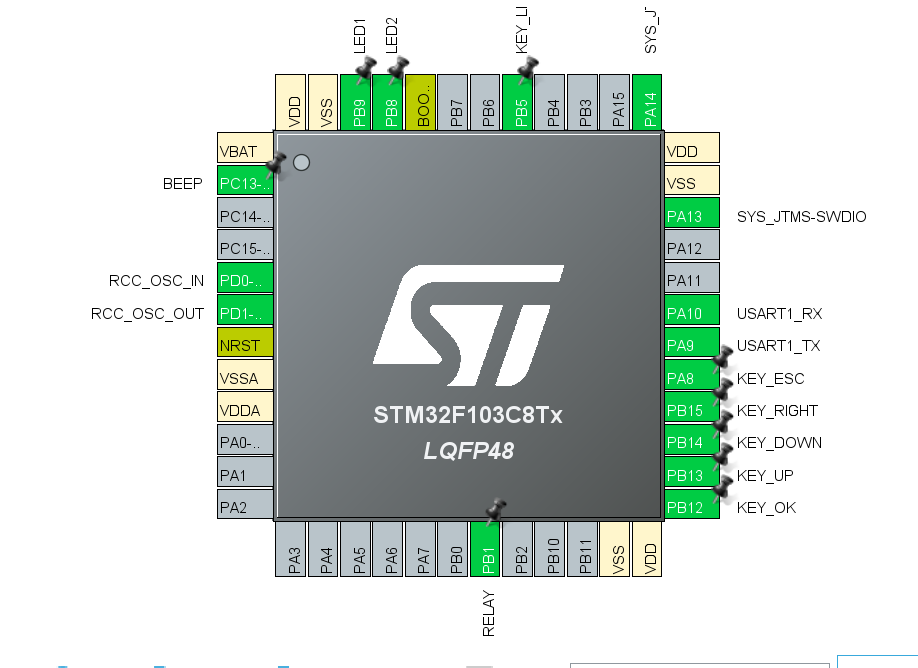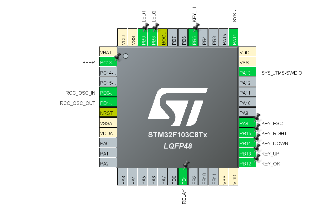 相对于标准库的GPIO输出状态控制,HAL库在结合了CubeMX软件后实现GPIO输出状态控制更加简单,一些基本的配置由CubeMX帮助我们完成,且对GPIO输出状态的控制也有相应库函数的实现。我们用三个外部器件LED,BEEP和继电器来展示控制GPIO引脚的电平变化。以控制LED灯为例,我们看CubeMX配置和程序实现。