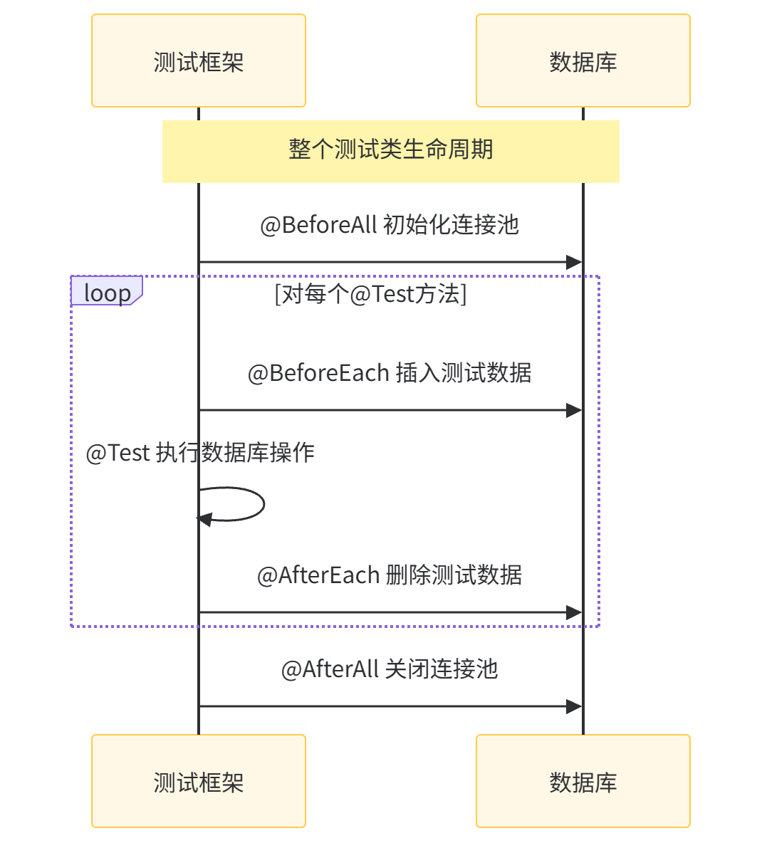 在实际开发中,我们经常需要测试与数据库交互的代码(如 DAO 层)。这时 @BeforeEach 可用于插入测试数据,@AfterEach 可用于清理数据,确保测试环境干净。
