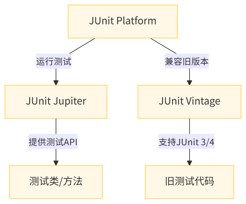 - JUnit Platform:测试运行的基础平台,负责启动测试引擎、提供控制台输出等