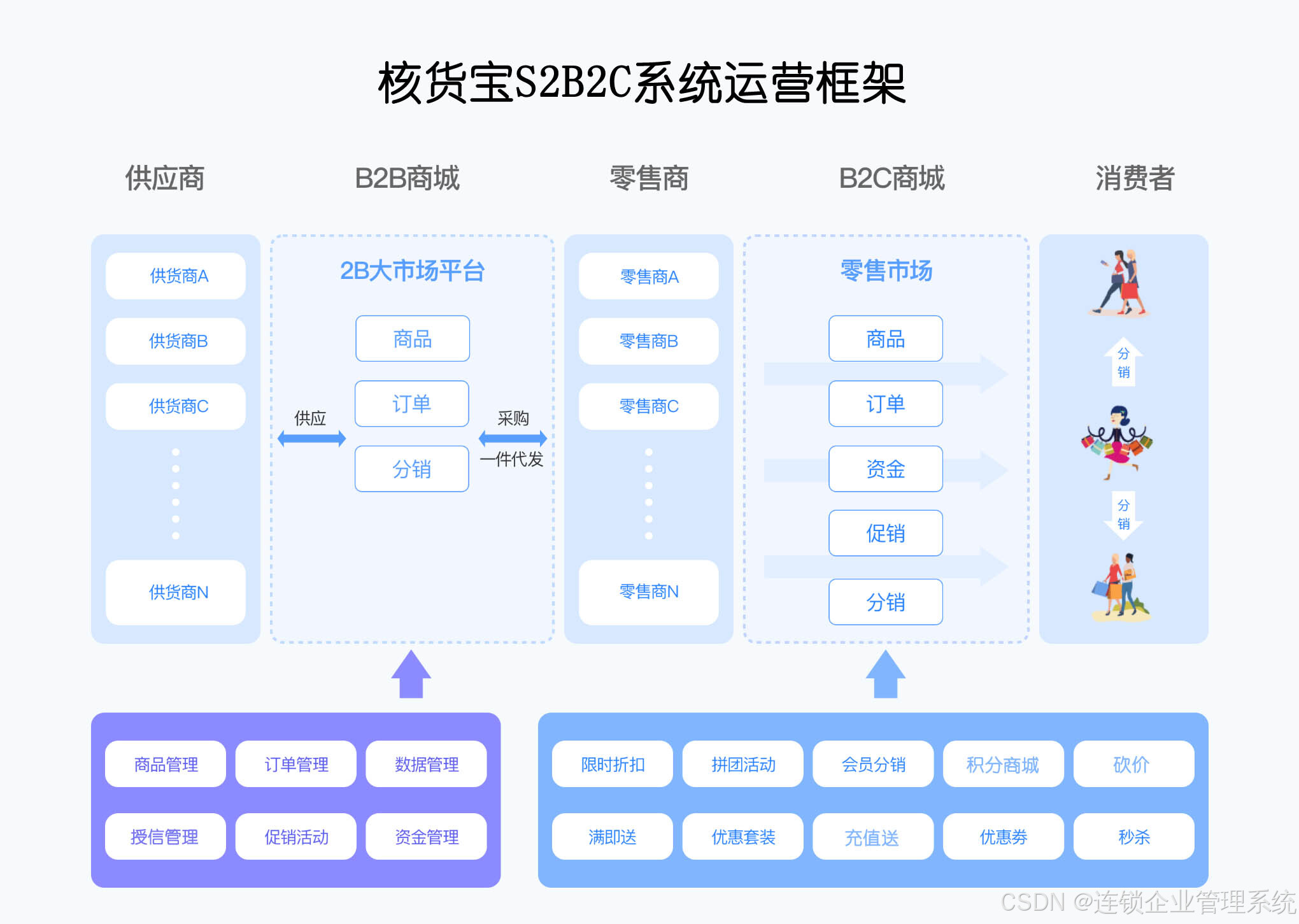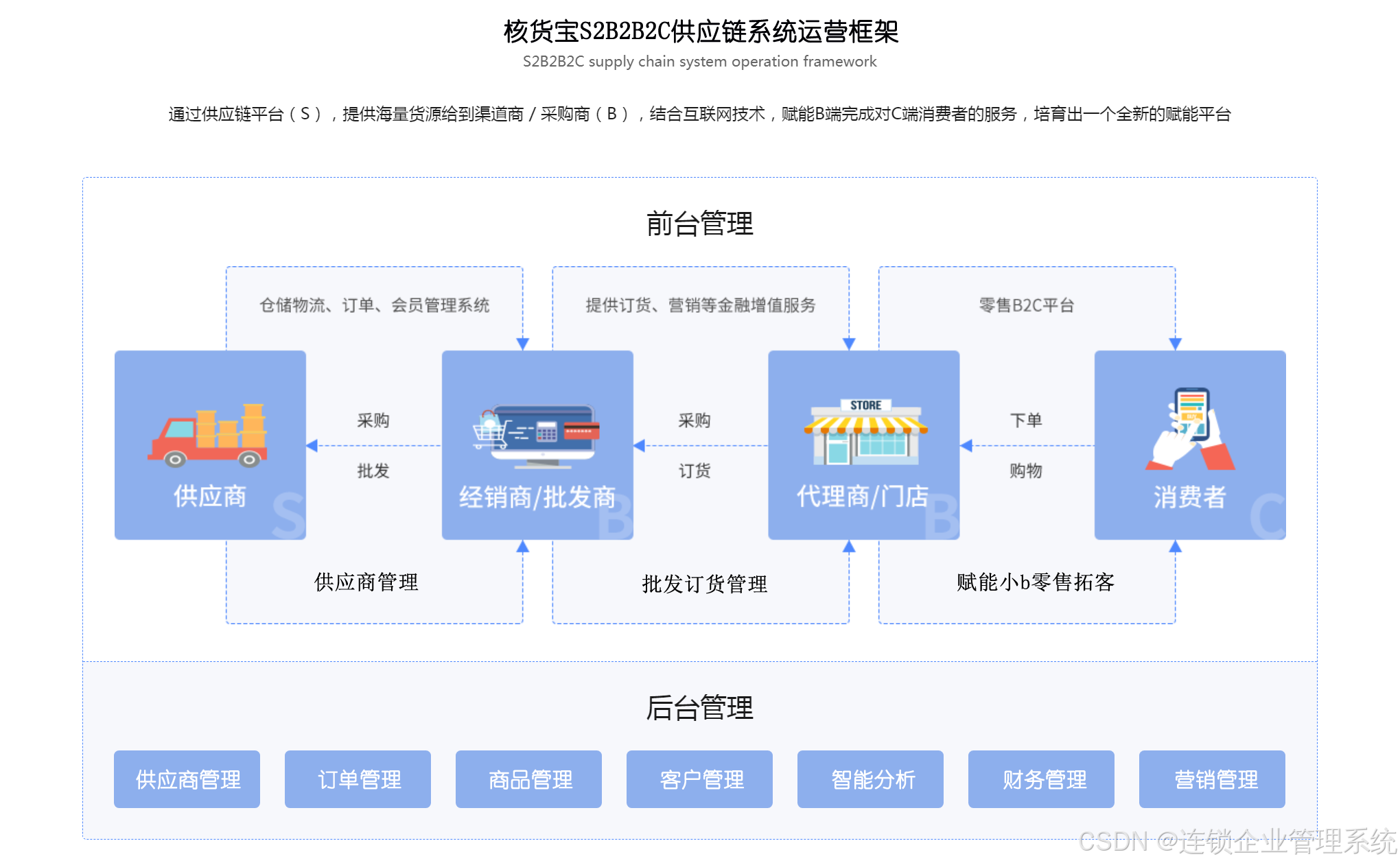 在跨境S2B2C模式的实际运营中,B端常面临货源整合难、运营效率低、客户维护成本高的困境,而C端则受限于下单渠道单一、履约信息不透明、个性化需求难满足等问题,这些痛点严重制约了供应链的整体流转效率与用户体验。核货宝作为一款聚焦供应链领域的S2B2C系统源码解决方案,精准切入上述痛点,以“深度赋能B端、极致服务C端”为核心定位,成为跨境S2B2C供应链系统的优质选择,下面我们分析它的特点。