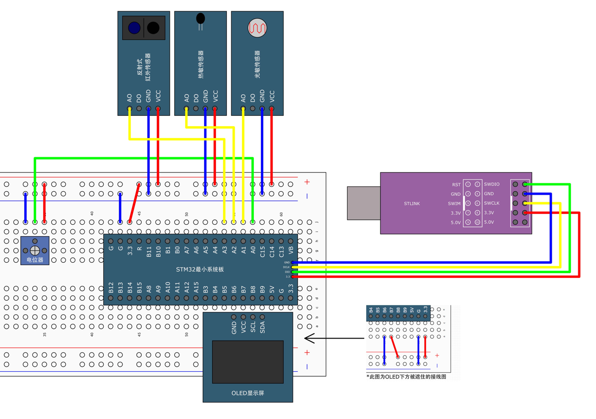 本实验实现了 STM32F103C8T6 多通道 ADC 采样 的完整流程,采用软件轮询切换通道方式,无需 DMA,即可实现多个传感器的信号采集与显示。