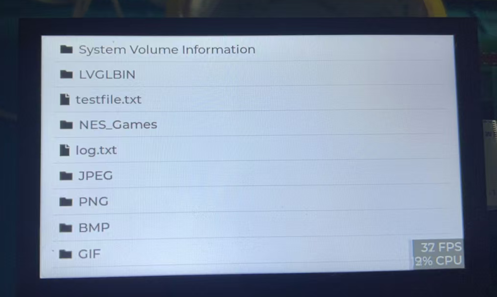 实现LVGL上移植FatFs意思就是:把LVGL 自己的文件系统抽象模块 lv_fs和FatFs的标准 文件系统APIf_open, f_read, f_close, f_opendir, f_readdir, f_stat 移植在一起,实现LVGL可以通过自己的文件系统API来操作SD卡里面的内容,比如使用LVGL显示SD卡里面的图片。