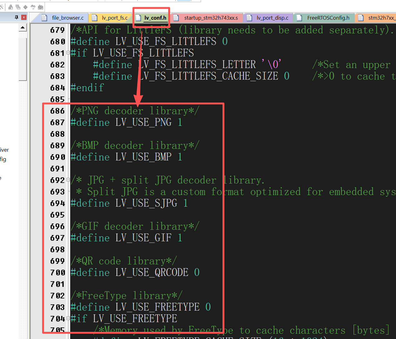 需要注意的是:如果你想测试显示SD卡里面的图片,必须先在lv_conf.h里面启用对应的图片编解码器