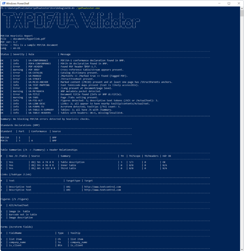 using TXTextControl.PDF.Validation;var report = PdfUaValidator.Validate("documents/hyperlink.pdf");