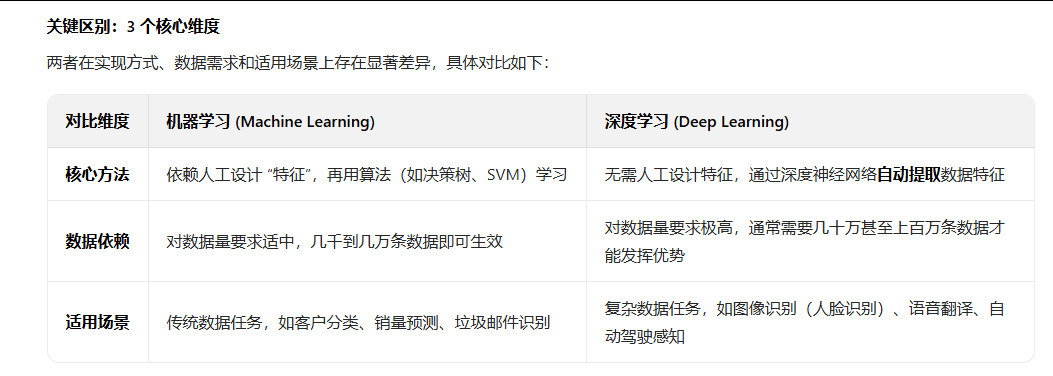| 学习方式 | 从标注数据中学习特征和模式 | 从环境交互试错中学习策略 |