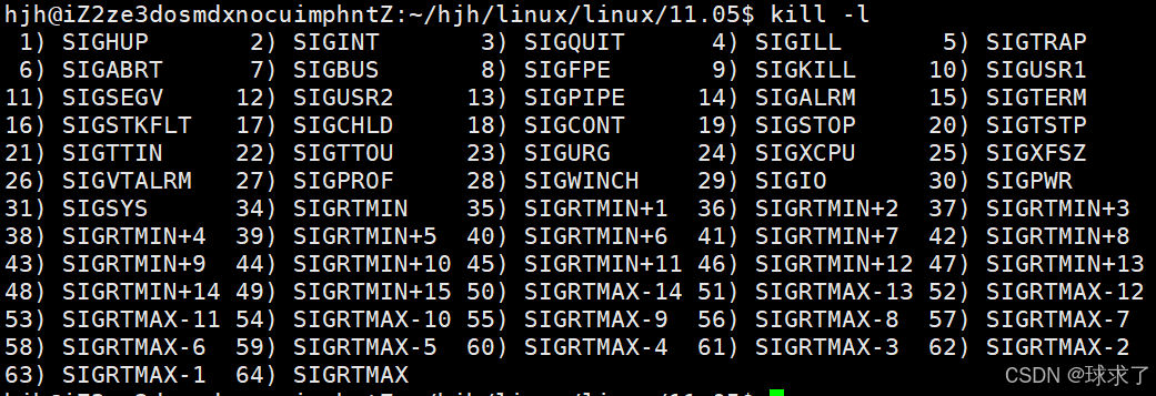Linux系统中,使用 kill -l 命令查看所有信号。