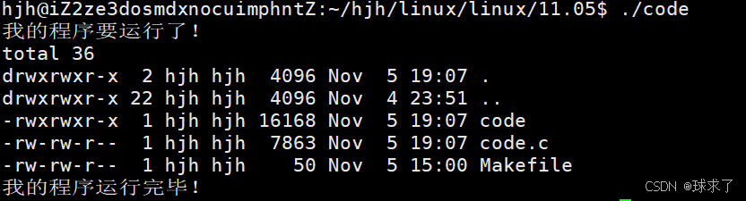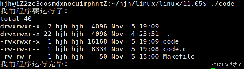 {printf("我的程序要运行了!\n");if (fork() == 0){sleep(1);execv("/usr/bin/ls", argv);exit(1);}waitpid(-1, NULL, 0);printf("我的程序运行完毕!\n");return 0;