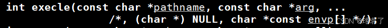 //前6个都是C语言提供的调用接口,最后一个是Linux提供的系统调用int execl(const char *path, const char *arg, ...);int execlp(const char *file, const char *arg, ...);int execle(const char *path, const char *arg, ...,char *const envp[]);int execv(const char *path, char *const argv[]);int execvp(const char *file, char *const argv[]);int execvpe(const char *file, char *const argv[], char *const envp[]);//系统调用