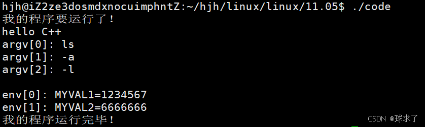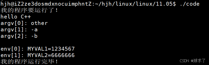 {printf("我的程序要运行了!\n");if (fork() == 0){sleep(1);execle("./other", "other", "-a", "-b", NULL, env);exit(1);}waitpid(-1, NULL, 0);printf("我的程序运行完毕!\n");return 0;