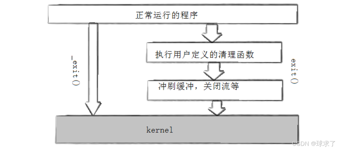 _eixt和exit的区别是:调用exit()退出进程时,会进行缓冲区的刷新。调用_exit退出进程时,不会进行缓冲区的刷新。
