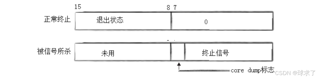 没有异常,则低7位为0,一旦低7位不为0,就是异常退出,则8-15位的退出码无意义。