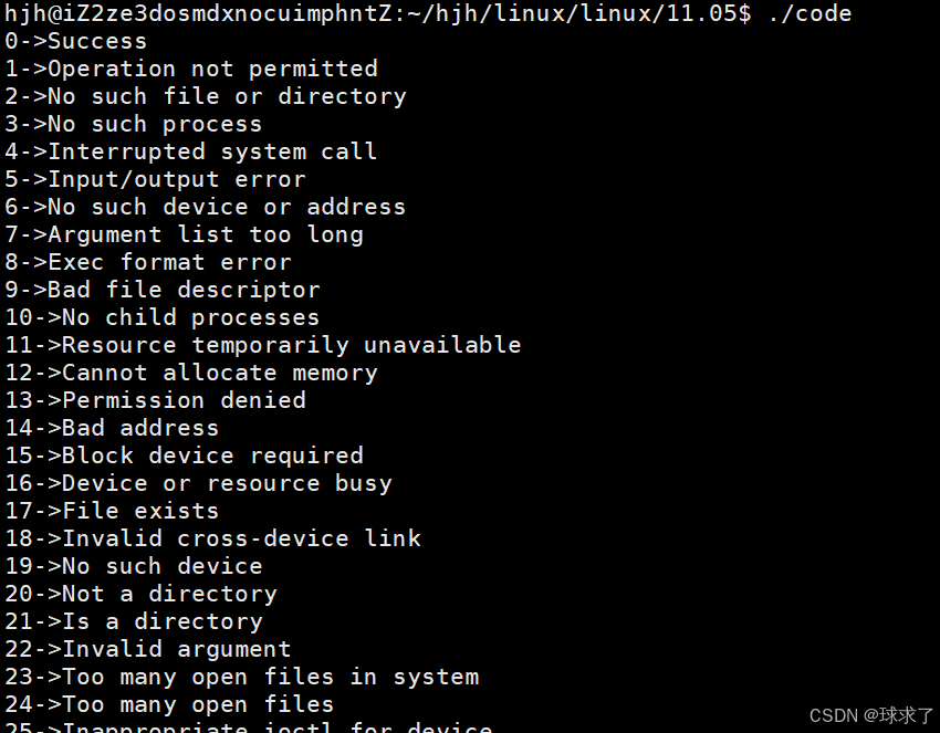 {for (int i = 0; i < 150; i++){printf("%d->%s\n", i, strerror(i));}return 0;