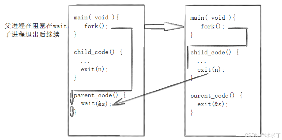 wait函数和scanf函数一样,如果子进程没有退出,则父进程会阻塞在wait调用处。wait函数等待任一子进程退出,如果有多个子进程,其中一个子进程退出则调用wait函数。