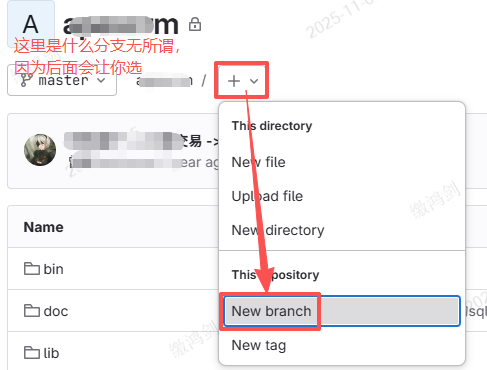 2.点击加号 ->点击“New branch”