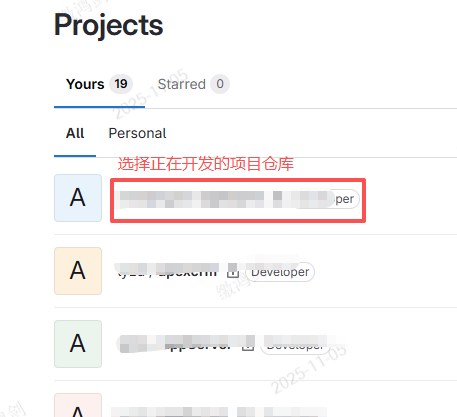 1.进入要开发的某个项目仓库