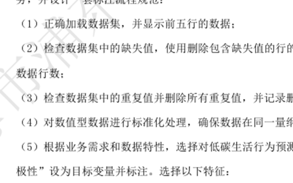这里同上一空的X一样是给y进行赋值,我们从题目中找到,将“低碳行为积 极性”设为目标变量并标注。所以y中的值应该是低碳行为积极性,而特征中只要5是和这个相关的
