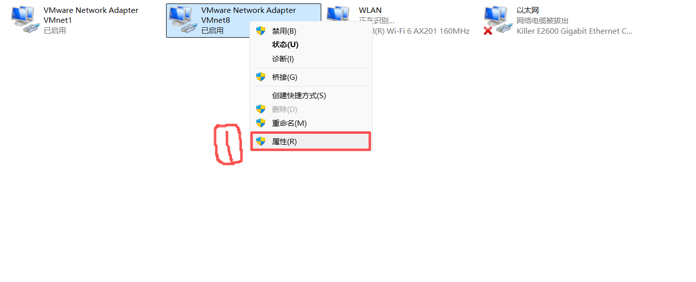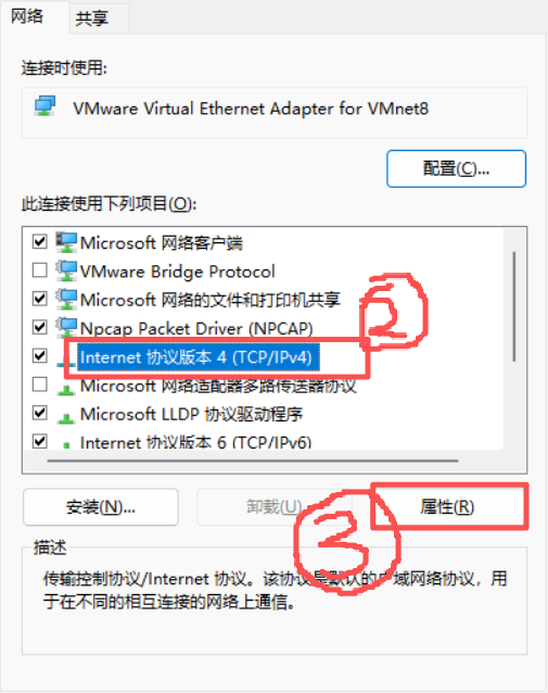 在win+R中输入ncpa.cpl,按照图片中的操作,可以看到我的电脑设置的是让虚拟机自动获取IP的。