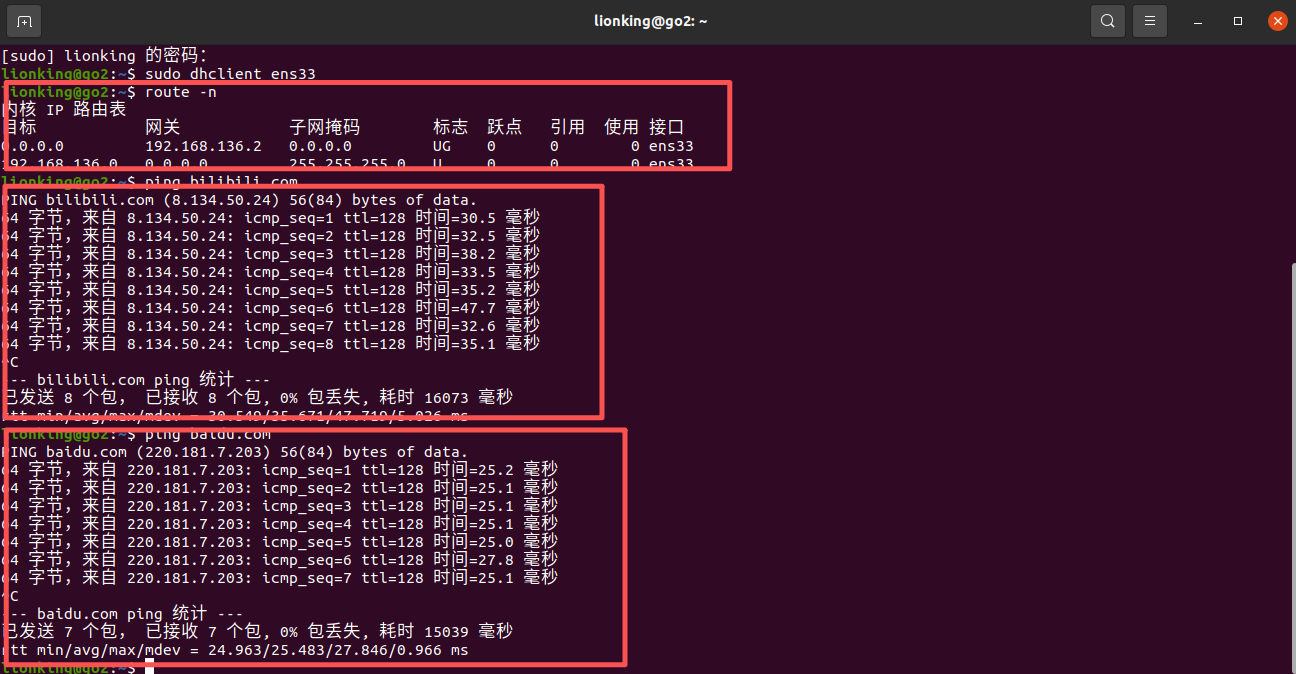 sudo ip link set ens33 up2.获取一个动态IP地址