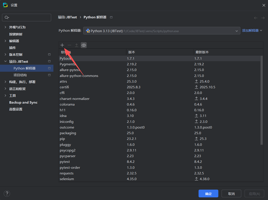 - 通过PyCharm的包管理工具安装pytest库,它将作为我们的测试框架。