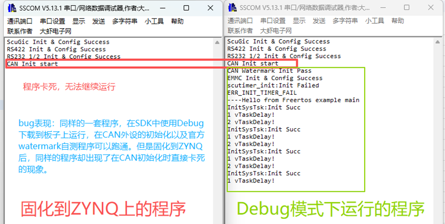 再次生成固件,下载,果然固化程序跑CAN初始化时,不再死机了