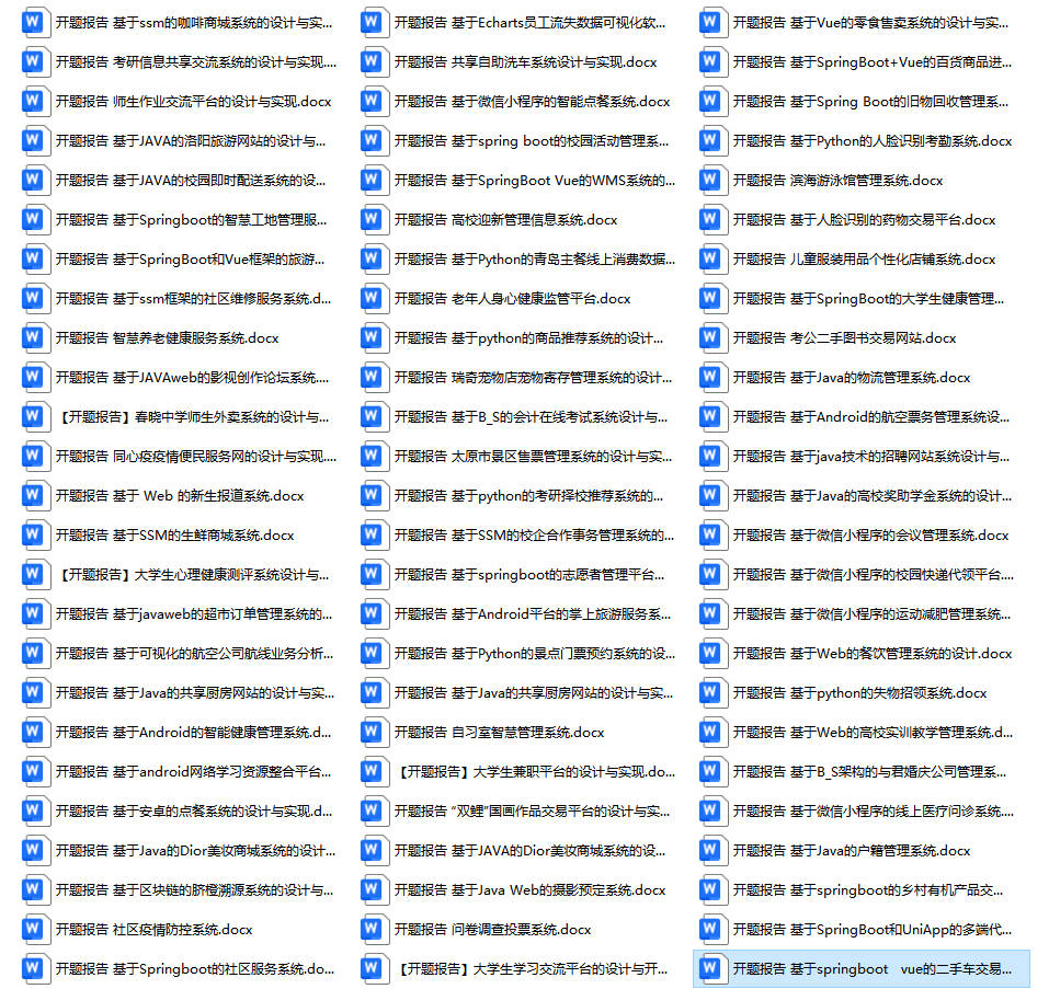 以上是某同学的毕业设计答辩的过程,如果你现在还没有参加答辩,还是开题阶段,已经选好了题目不知道怎么写开题报告,可以下面找找有没有自己符合自己题目的开题报告内容,列表中的开题报告都是往届真实的开题报告,可发送使用或参考。文末或底部来联xi可免费获取