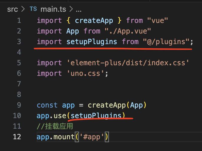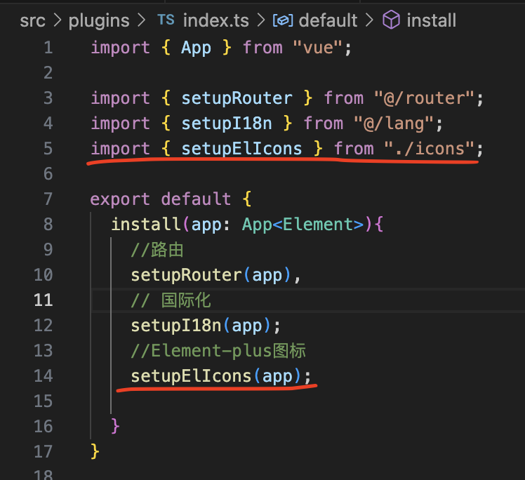 3、新建src/plugins/index.ts文件,引入刚建的icons.ts文件