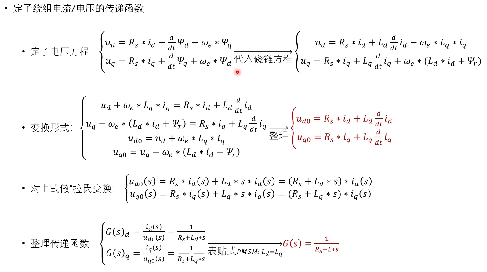被控对象传递函数的推导,依赖于DQ坐标下的电压方程以及磁链方程;