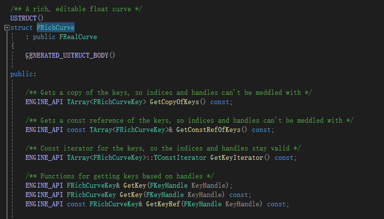 {if (InPoints.Num() < 2){return;}FRichCurve* RichCurve = new FRichCurve();for (FVector2D InPoint : InPoints){FKeyHandle KeyHandle = RichCurve->AddKey(InPoint.X, InPoint.Y);RichCurve->SetKeyInterpMode(KeyHandle, ERichCurveInterpMode::RCIM_Cubic);}UCanvasPanelSlot* CanvasPanelSlot = Cast<UCanvasPanelSlot>(this->Slot);if (CanvasPanelSlot == nullptr)return;TArray<FVector2D> ResultPoints;float WidgetWidth = CanvasPanelSlot->GetSize().X;int32 Begin = 0;int32 End = (int32)WidgetWidth;for (int32 X = Begin; X < End; X++){float Y = RichCurve->Eval(X);FVector2D ResultPoint(X, Y);ResultPoints.Add(ResultPoint);}delete RichCurve;FSlateDrawElement::MakeLines(OutDrawElement,InLayerId,InAllottedGeometry.ToPaintGeometry(),ResultPoints,ESlateDrawEffect::None,InColor,true,InThickness);