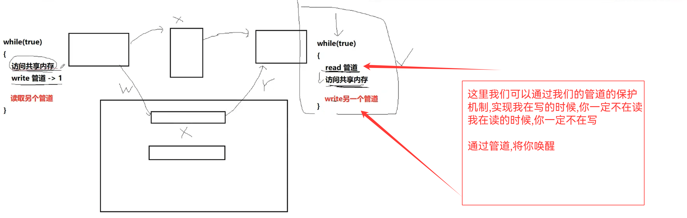 管道有自己的保护机制,而共享内存是没有对应的保护机制的