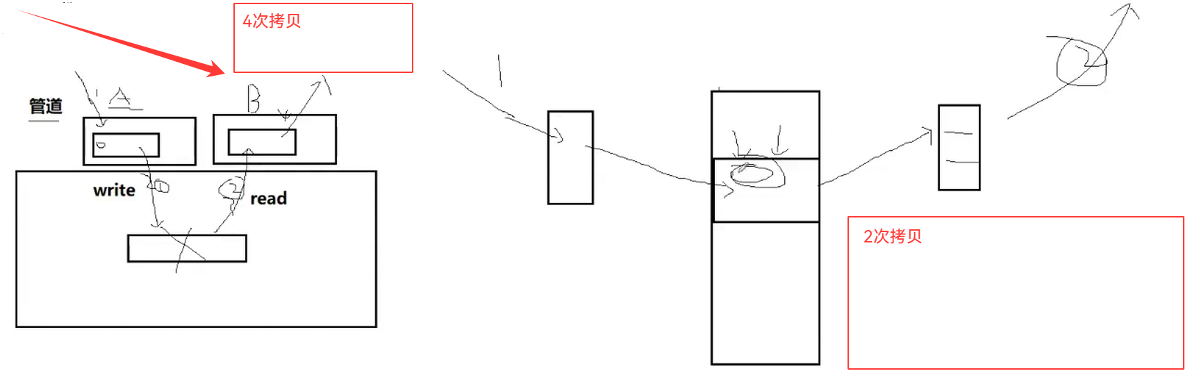 这里我们用管道传输数据时的拷贝是非常小的,主要还是通过我们的共享内存来进行我们对应的数据交互