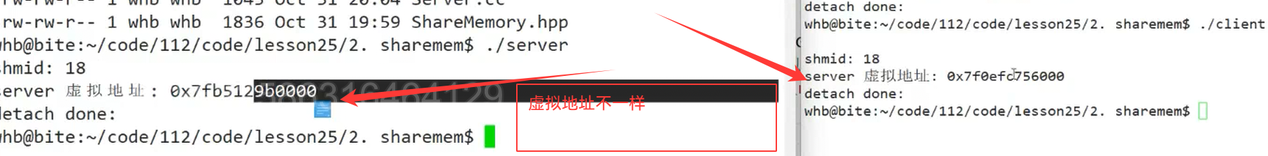 {//1.创建keykey_t k = ::ftok(gpath.c_str(),gprojId);if(k < 0){std::cerr << "ftok error" << std::endl;return 1;}std::cout << "k : " << k << std::endl;//2.创建共享内存 && 获取// 注意: 共享内存也有权限!int shmid = ::shmget(k,gshmsize,IPC_CREAT | IPC_EXCL | gmode);if(shmid < 0){std::cerr << "shmget error" << std::endl;return 2;}std::cout << "shmid : " << shmid << std::endl;sleep(5);//3.共享内存挂接到自己的地址空间中void* ret = shmat(shmid,nullptr,0);std::cout << "attach done: " << (long long)ret << std::endl;sleep(5);::shmdt(ret);std::cout << "detach done..." << std::endl;//n.删除共享内存shmctl(shmid,IPC_RMID,nullptr);std::cout << "deete shm done" << std::endl;sleep(5);return 0;