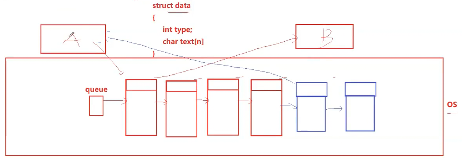 A和B都可以向队列里面发生消息,我们用type来标识是A进程发的还是B进程发送的