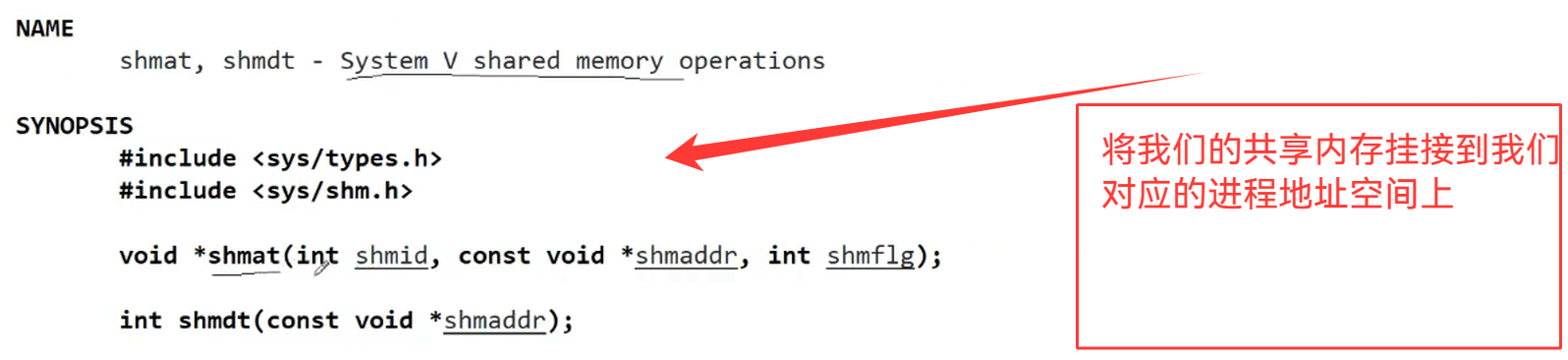 2.将共享内存挂接到自己的地址空间