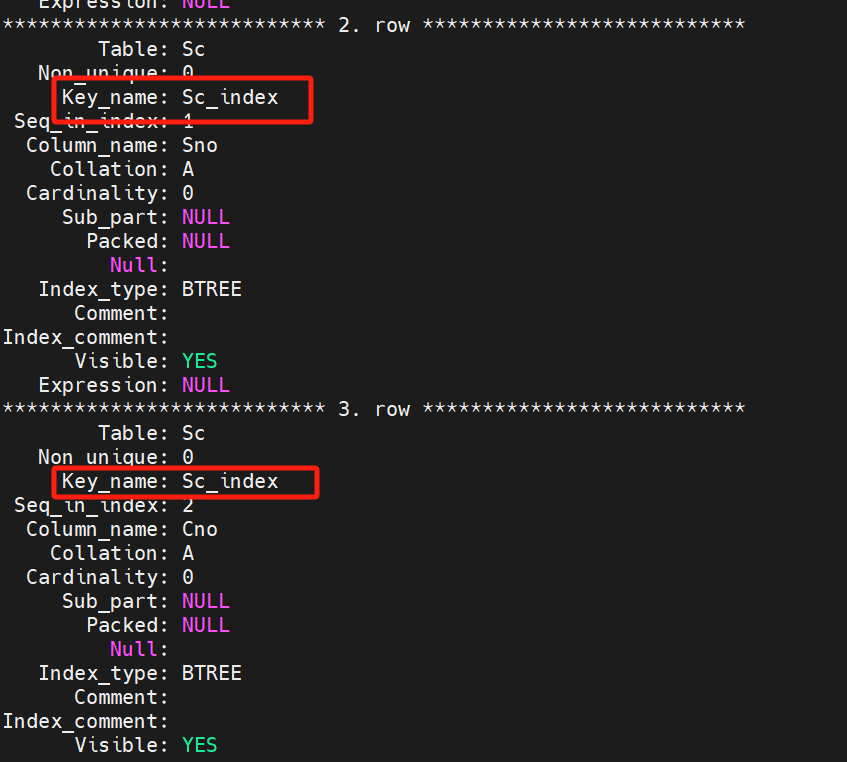 mysql> show index from Sc\G;