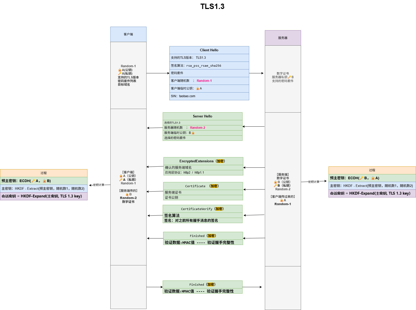 TLS 1.3在TLS 1.2的基础上进行了重大改进,核心目标是提高性能和增强安全性。它将握手过程简化为一次往返(1-RTT),甚至在客户端已经访问过服务器的情况下可以实现零次往返(0-RTT)。