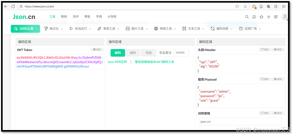 使用jwt解密网站解析,完整如下所示。