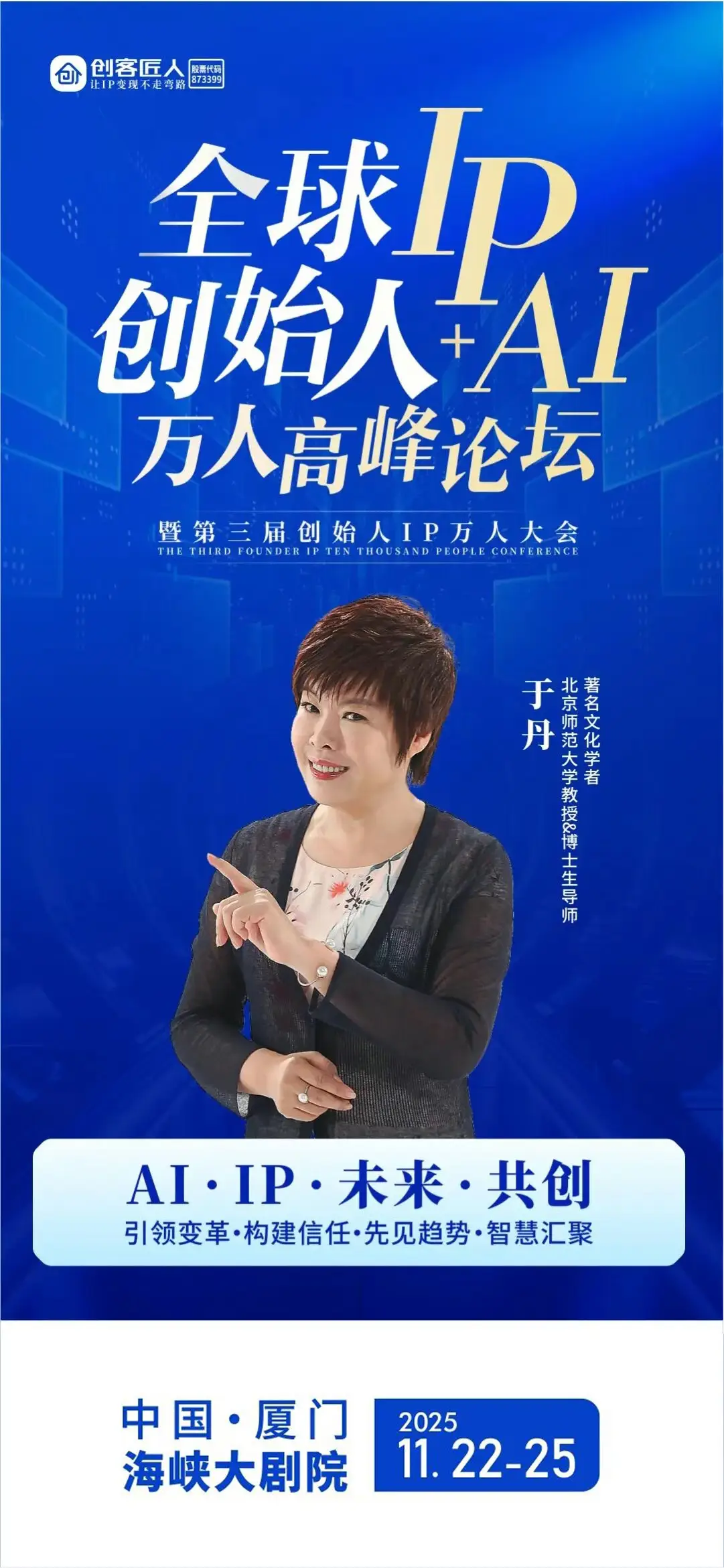2025 年 11 月的厦门交流活动中,于丹将带来更多 “人文 + AI” 的实战细节。对每一个不想在内卷中迷失的知识付费人、IP 创作者来说,这些思考能帮你校准方向,让内容真正实现 “有温度、有价值、能长久”。