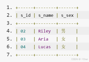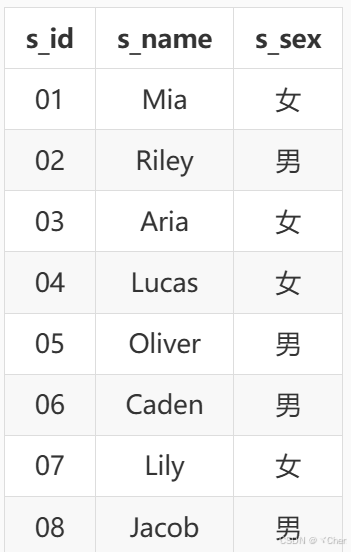 本关任务:根据提供的表和数据,查询与s_id=01号同学学习的课程完全相同的其他同学的信息(学号s_id,姓名s_name,性别s_sex)。表格数据与第三关一致。