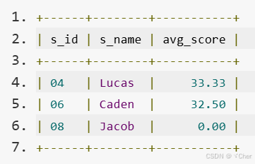 本关任务:根据提供的表和数据,查询平均成绩小于60分的同学的学生编号(s_id)、学生姓名(s_name)和平均成绩(avg_score),要求平均成绩保留2位小数点。(注意:包括有成绩的和无成绩的)